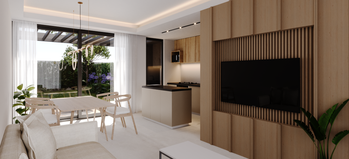 Cada vivienda de Jardí fue pensada para que disfrutes de un estilo de vida relajado, en contacto con la naturaleza y con la calidad que distingue a Alaró. En el corazón de Gonnet, a solo 50 metros de la República de los Niños. Jardí cuenta con 5 casas, distribuidas en dos plantas, con una cómoda cocina integrada al estar comedor, dos dormitorios y un diseño moderno y funcional, creado para brindarte todo el confort en una ubicación inmejorable.